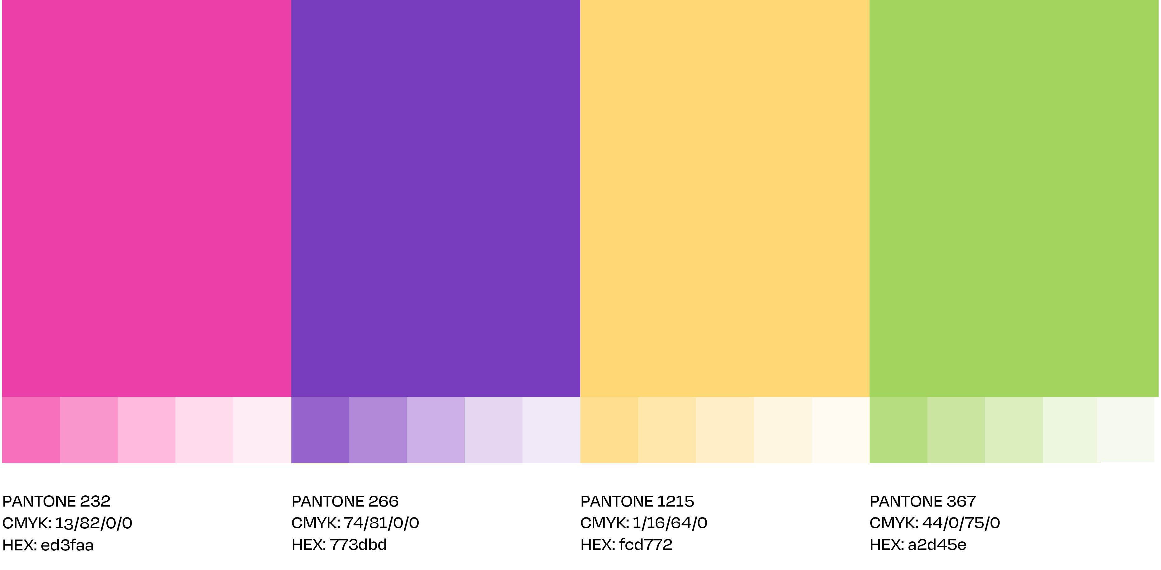 Vi er folkekjære og personlige. Derfor liten a i navnetrekket. Vi er også friske, i tiden og modige i fargevalget: Symbolet er i Pantone 232 og navnetrekket i Pantone 266.